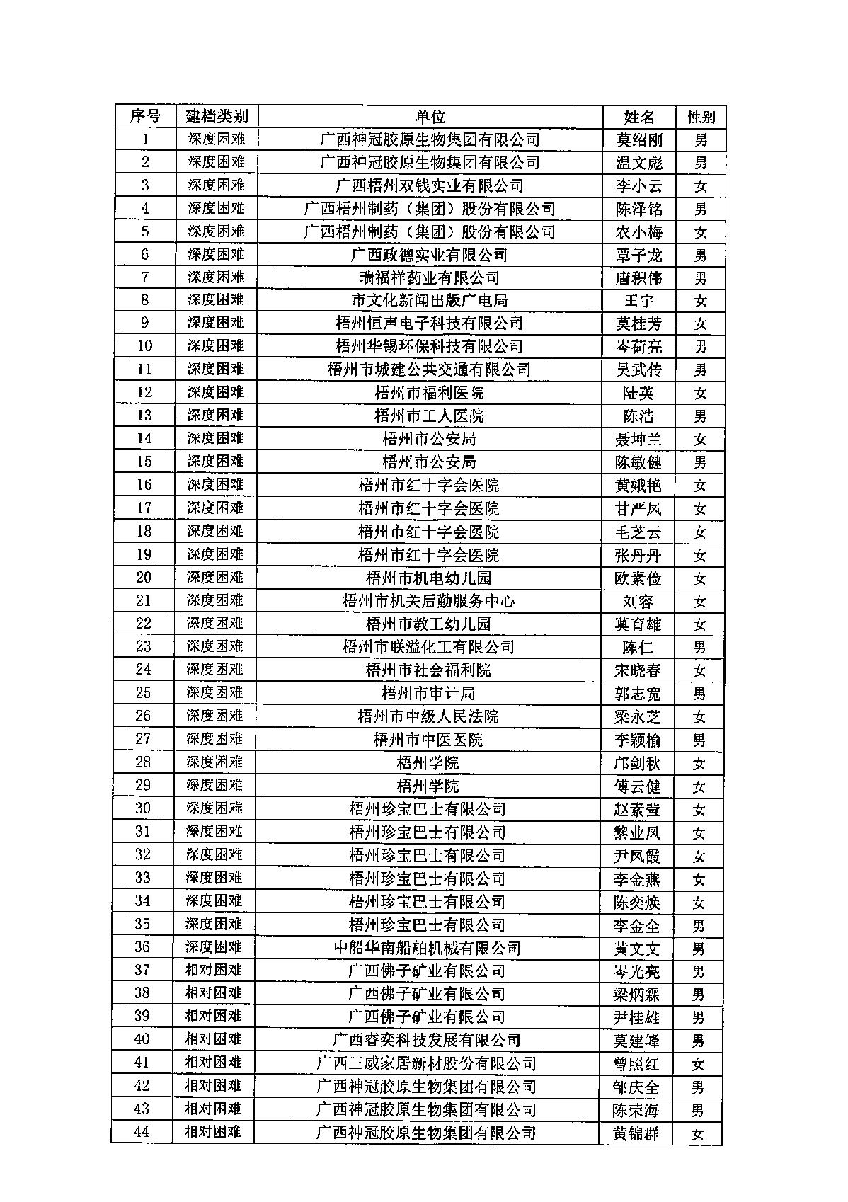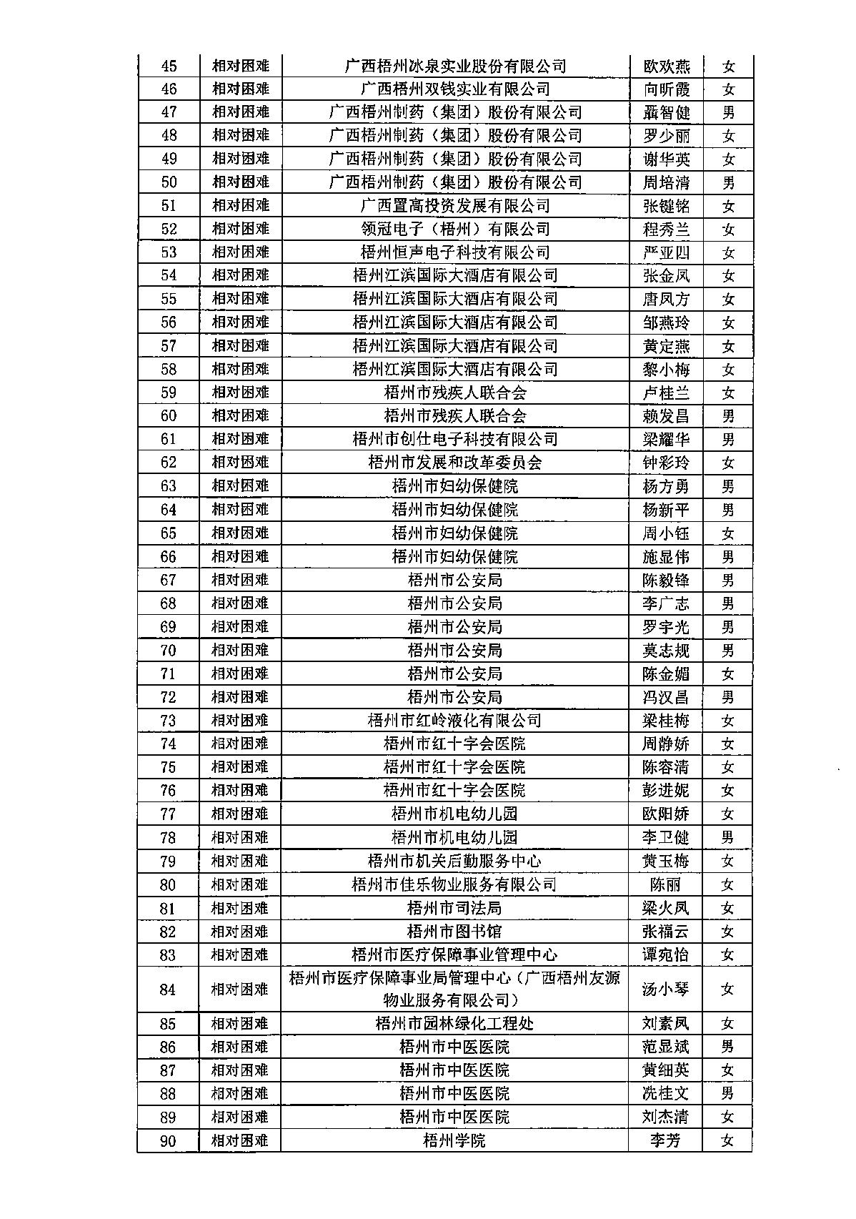 困難職工公示