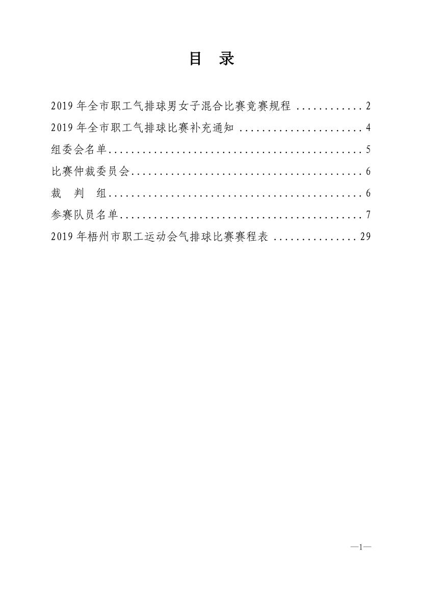 2019 年全市職工氣排球男女子混合比賽秩序冊